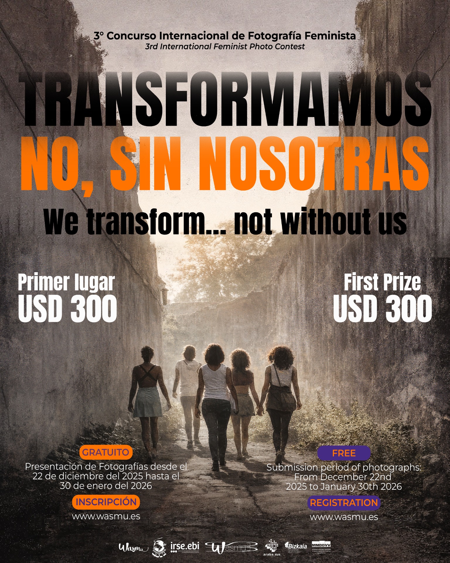 Entre el 25 de noviembre de 2025, dentro del programa de actividades para los 16 días de activismo contra la violencia de género, y el 14 de diciembre de 2025, se presentarán en diferentes eventos las bases de este Tercer Concurso Internacional de Fotografía Feminista con el título "TRANSFORMAMOS... NO, SIN NOSOTRAS" (invitando a completar ambas frases de manera que reflejen tanto la acción transformadora como la exigencia de participación indispensable).